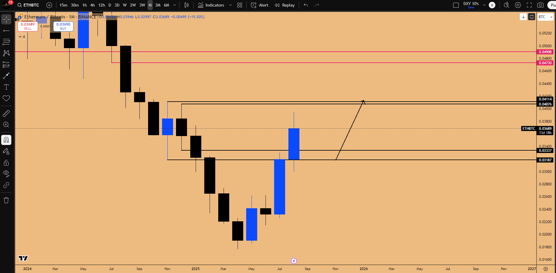 Figure 5: ETH/BTC Inside Monthly Candle Failure pattern in play