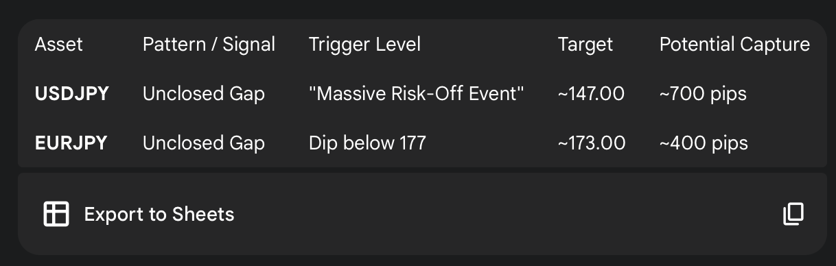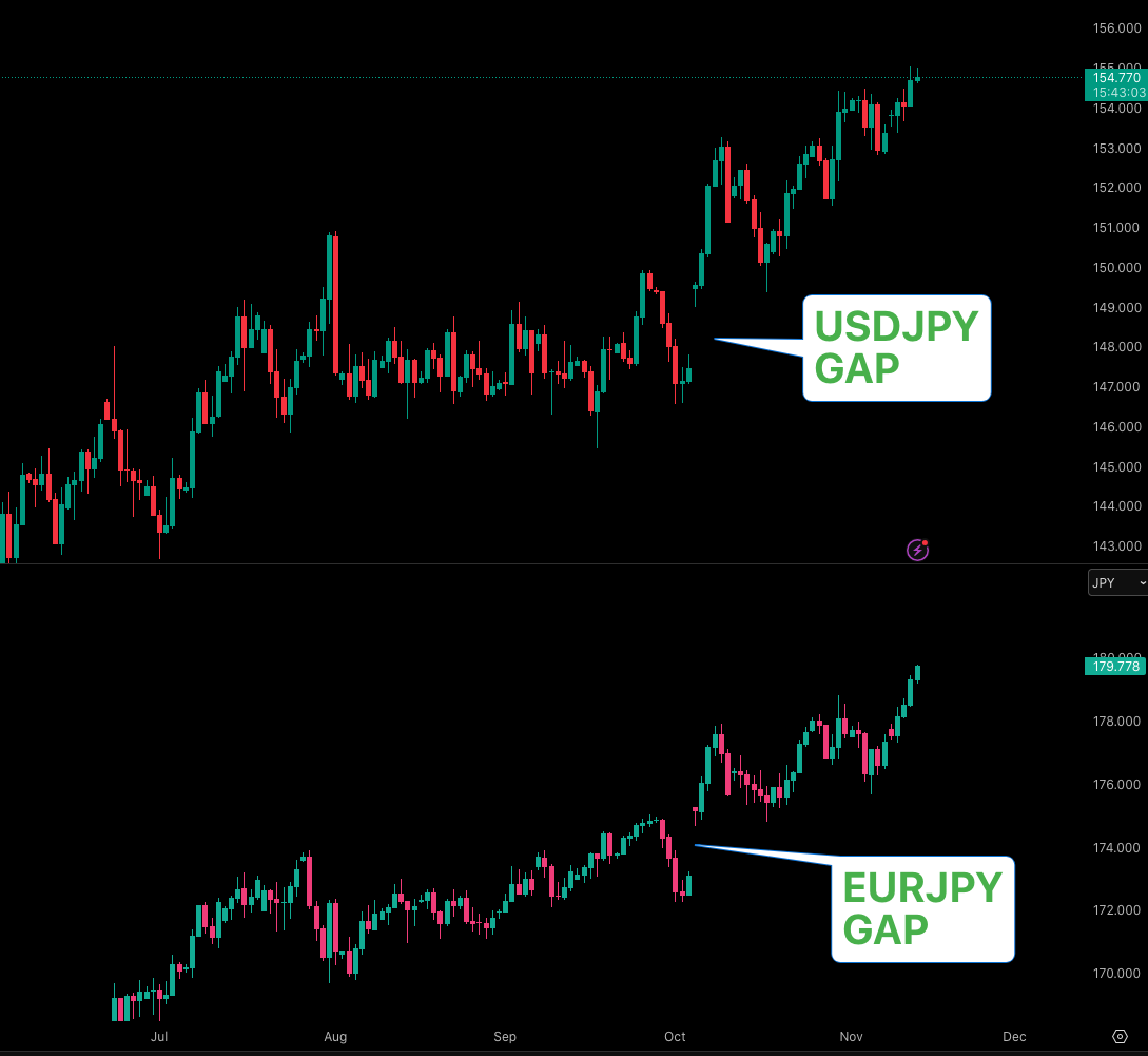 The most glaring opportunity and risk in the FX market is the presence of massive, unclosed gaps on the Japanese Yen (JPY) pairs.