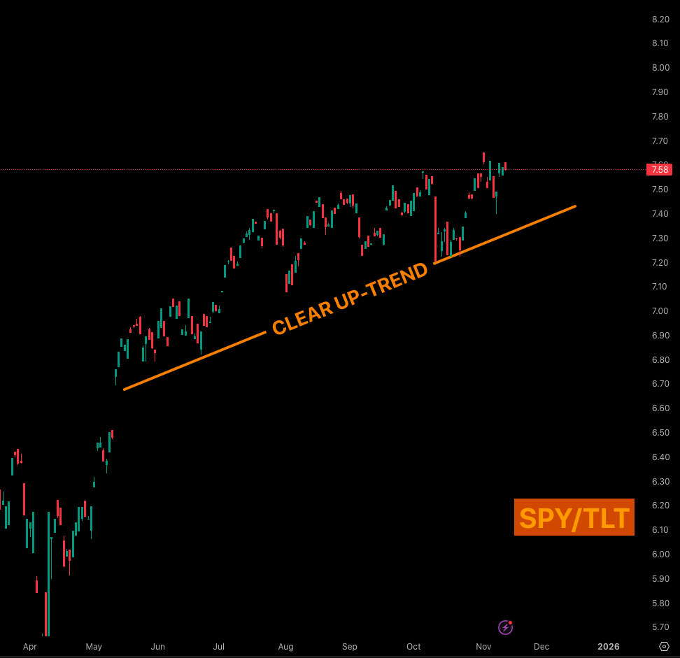 SPY/TLT Ratio: Currently high, but consolidation warns of strained financial conditions.