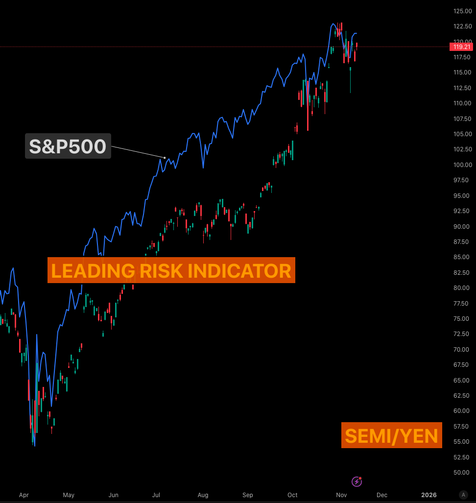SOX/FXY Ratio: A high-volatility, leading indicator that moves faster than the S&P 500.