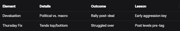 No technique reviews here, educational resources cover those. Instead, it's about running the trading business: gauging strategy effectiveness like London fixes, six-week cycles, and inside bars, while keeping approaches partly discretionary yet effective. Questions are addressed throughout, building to a comprehensive view. For traders, this setup offers a blueprint: audit to query weak macro views or lean into solid ones, like recognizing macro regimes change and fixes may underperform in choppy narratives.